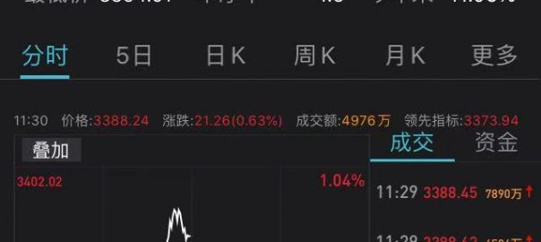 截至午間收盤,滬指報3388.24點,漲幅0.63%,成交額2160.06億元;深成指報13851.29點,漲幅0.73%,成交額2554.29億元;創業板指報2777.98點,漲幅0.63%;上證50指數報3523.69點,漲幅1.1%。