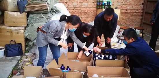衡水市市場監管局執法人員在排查中發現,淘寶網平台上一個店鋪,銷售的產品是標籤上僅有品名的“三無”產品,通過對該店鋪產品信息認真研判及對其微信公眾號所显示的信息綜合分析,發現其存在無證制售化妝品違法行為的嫌疑。執法人員立即行動,前往該網店經營者營業執照信息所显示的註冊地址饒陽縣某村開展調查,發現該註冊地址無實際經營行為。據周圍村民介紹,該店法人為該村村民,目前可能在衡水市區從事化妝品經營,衡水市市場監管局积極同市公安局溝通,通過共同努力,基本鎖定該店在衡水市區的制售窩點,執法人員現場對其生產原料、成品、包裝材料、加工設備、用於網上銷售產品的電腦進行查扣。