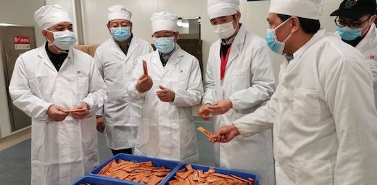 鄒賢啟(左三)督查調研國葯中聯抗新冠肺炎藥品金恭弘=叶 恭弘敗毒顆粒質量管理情況。