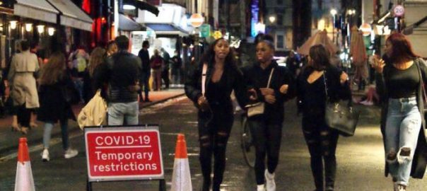 當地時間9月23日,英國新增新冠確診數高達6178例,創下了5月1日以來的新高,累計確診病例數達409729例。圖為在強制執行“酒吧晚上10點關閉”防疫新規的前夜,倫敦一酒吧街上人流絡繹不絕。 中新社發 高天胤 攝