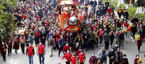 民眾以各種藝陣開道,簇擁着王爺巡安。中新社記者 呂明 攝
