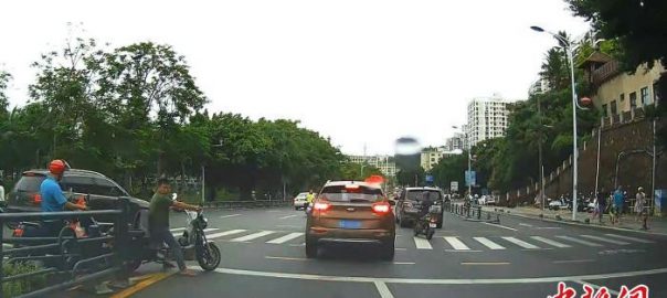 三亞市區交通路況複雜,車輛通行需注意各方安全。(行車記錄儀截屏畫面) 記者王曉斌 攝