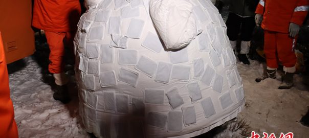 着陸時正值凌晨,為給返回器保溫,防止剩餘燃料被凍住、增加後續處置的難度,地面回收人員為返回器穿上了兩層厚厚的棉衣,最外層還要套上迷彩外罩。