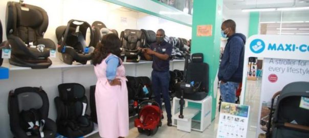 5月1日,南非正式將針對新冠肺炎疫情的封鎖等級由最嚴厲的第五級調低至第四級,這意味着部分商業店鋪得以重新開門,民眾也可以有限外出活動。圖為約翰內斯堡一商店內,店員和顧客佩戴口罩交流。中新社記者 王曦 攝